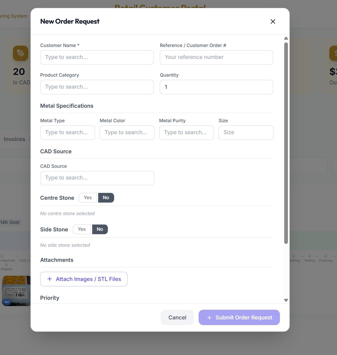 - CAD Approved (green button) — Click to approve the CAD design. The order will move forward to production.
